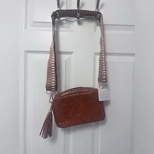 This is a new with tags “The Woven Willow Camera Crossbody Bag in Brown.”