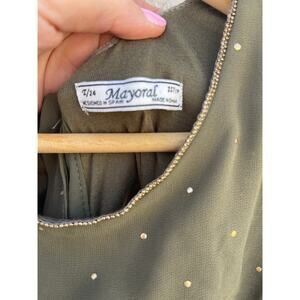 Mayoral Girls Olive Green Gold Beaded Cut out back wrap waist romper - 14