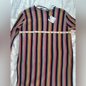 Zara 60s 70s Inspired Striped Midi Scalloped Shift Dress
