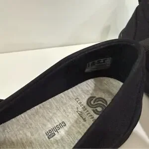 Step into comfort with these Cloudsteppers by Clarks black flats! Designed with a cushioned sole, these shoes provide all-day support and a cloud-like feel. Perfect for work, travel, or everyday wear.
