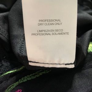 Chic black mini dress with floral embroidery. Sleeveless design. Sheer neckline with ruffle trim. Perfect for special occasions.