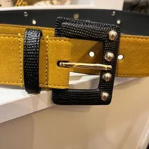 Beautiful CAbi Carol Anderson by Invitation Ornament leather belt. Worn twice, excellent condition. Excellent price! Black and a gold yellow
