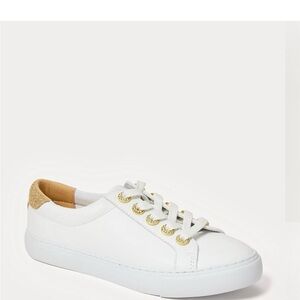 Chic white sneakers with gold details. Ideal for everyday style. Size 10B. Only tried on.