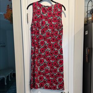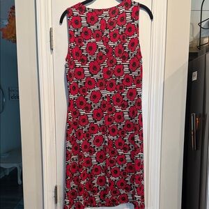Chic floral design with bold red and black hues. Ideal for casual or dressy occasions. Signature Tommy Hilfiger style. P2P is 18 inches. Length is 37 inches. Smoke free home. hibiscus 🌺 flowers. Love the vibe of this dress.