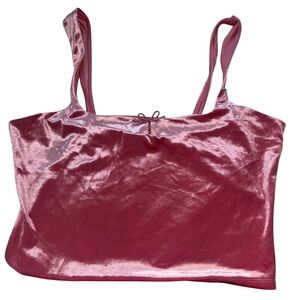 Wild Fable Pink Velvet Satin Bow Front Crop Top Camisole NWT Size L