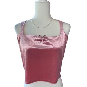 Wild Fable Pink Velvet Bow Front Crop Tank Top | Size L | NWT
