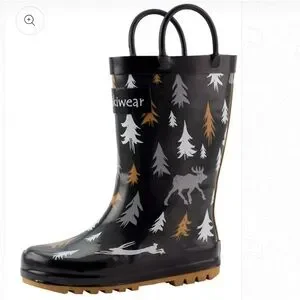 Oaki Black Wildlife Tracker Rain Boots Toddler 4T NWT