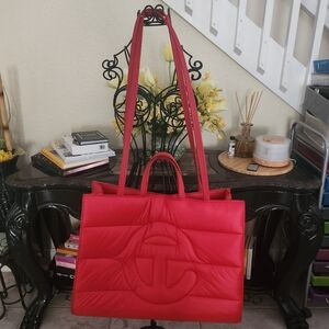 Telfar Large Red Puffer Tote & purse organizer