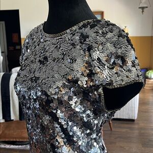 Morgan Taylor evening Sequin Silver and Black Dress