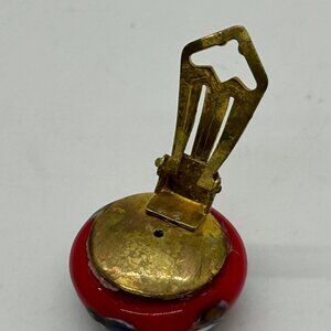 Vintage Red Venetian Glass Clip-On Earrings With Gold Tone Backs 3/4" Diameter