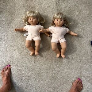 American girl Bitty baby’s. Twin Dolls with Blonde Hair and Navy Dresses.