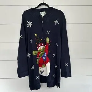 The Quacker Factory Women’s 1X Snowman Christmas Holiday Vintage Sweater grandma
