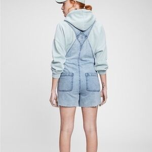 GAP NWT Denim Distressed Shortalls Overalls Size Medium in Light Cancun Blue
