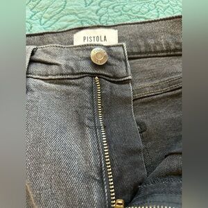 Stylish mid rise jeans by Pistola. Sleek gray black finish with slight distressing. Perfect for versatile wear.