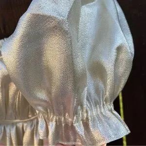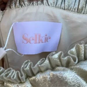 Keywords: Selkie, Seashell Gown, Champagne, Gold, Metallic, Maxi, Evening, Formal, Special Occasion, Babydoll, Puffed Sleeves, Empire Waist, Ruffles, Pleating, Designer, Size Medium, NWT Coquette Girl, Formal, Luxury, Party, Gala, Prom, Statement, Romantic, Regency Style, Bridgerton Cosplay, Bride, Bridal, Ren faire, fantasy, LARP, Wedding, docmartens, HOCO, Homecoming