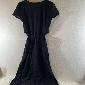 GAP Linen Blend Cutout Midi Dress With Pockets Black Size 8 Tall NEW