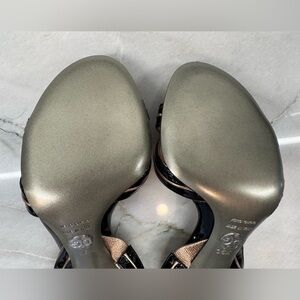 Stunning heeled sandals in black and rose gold. Unused condition. Come with box and two dustbags.