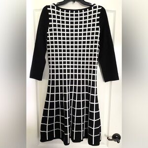 Ralph Lauren LAUREN dress Black and White Gradient Checker women M sweater dress