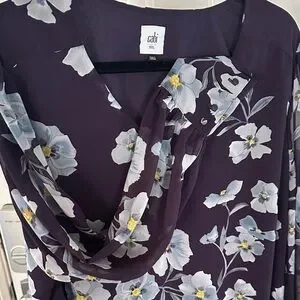 CAbi Navy and Light Blue Floral Long Sleeve Dress