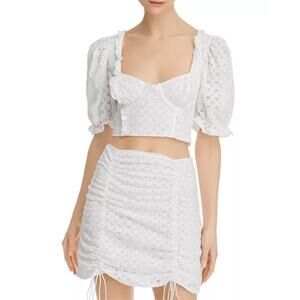 For Love and Lemons Cropped Top and Mini Skirt Set Sand Dollar Lace Up Eyelet White Size M/L