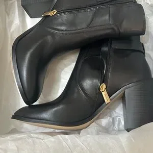 Step out in style with these elegant black leather ankle boots from Michael Kors. Perfect for any occasion, these boots offer both comfort and sophistication.