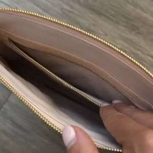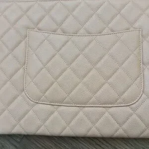 Like New Authentic Chanel Caviar Pouch. Elevate your style with the Chanel Quilted Leather pouch in a stunning tan (can look peachy too). Perfect for any occasion, this elegant clutch adds a pop of color to your ensemble. *looks different shades in different lighting. More photos available upon request