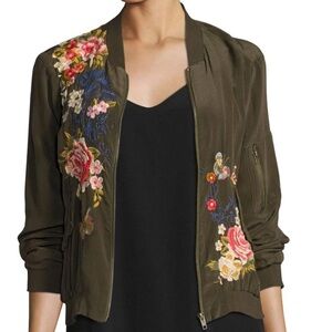 Johnny Was silk floral embroidered bomber jacket in size xl