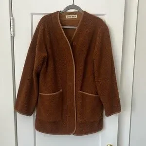 Lykke Wuulf Sherpa Teddy Ranch Jacket Driftwood Oversized Brown Jacket | Sz M/L