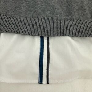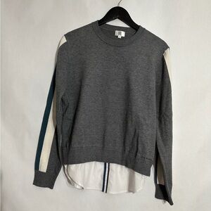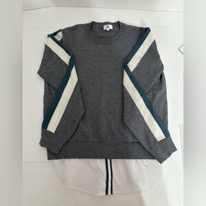 YAL New York Gray Stripe Sleeve Layered Faux Shirt Hem Sweater Size Large