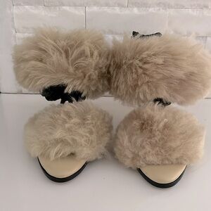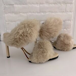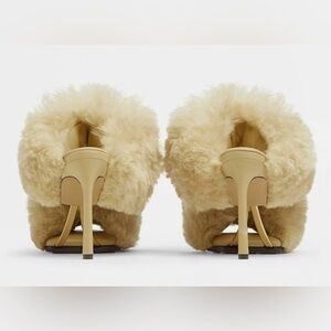 New. BOTTEGA VENETA The Poodle Curve shearling sandals 90mm in Beige EU 36 US 6