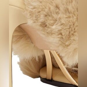 Behold the latest pair of statement sandals from Bottega Veneta: the Curve, presented in tactile shearling. This beige pair is propped on 90mm heels, ensuring a confident stride