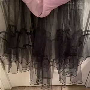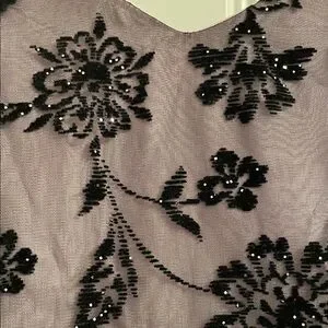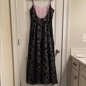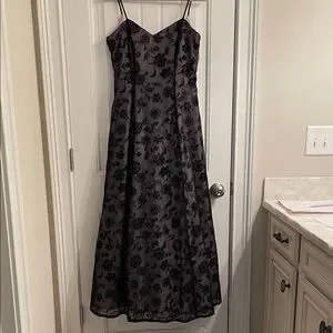 This is to die for. Beautiful vintage maxi formal dress with black glittery flowers that comes with lavender satin and black tulle. Perfect for cruises, goth, proms or weddings. This dress fits anyone who is 5’1 or 5’2. I wore this dress once in 2005 on a cruise with my parents. Having a hard time letting it go. EUC in size 11/12. Smoke free, pet friendly home.