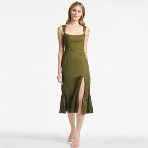 NWT SACHIN + BABI Laura Dress in Olive Smocked Midi Peplum Slit Sleeveless 10
