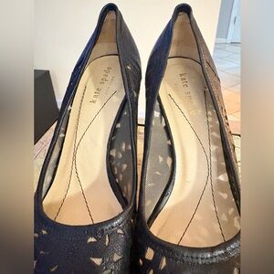 Step into sophistication with these stunning Kate Spade New York heels, designed to turn heads and elevate any ensemble. Crafted in a rich black hue, these 4-inch stilettos feature an exquisite cutout pattern reminiscent of delicate floral lace—adding a touch of romantic charm to their bold silhouette.