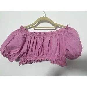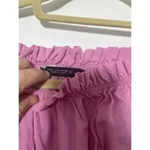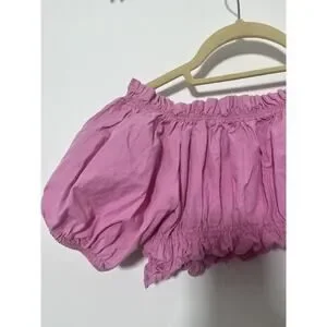 Zara Crop Top Shirt Womens Small Pink Short Sleeve Smocked Off The Shoulder