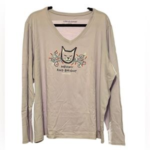 Life Is Good Lavender Meowy and Bright Cat Graphic Long Sleeve Tee Size XXL EUC