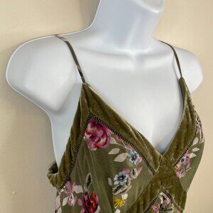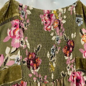 White House Black Market Forest Fairy Babydoll Velvet Trim Dress 10 Floral Midi