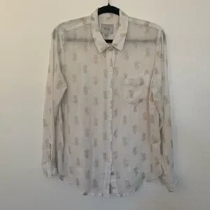 Rails Charli Pineapple Print White Gold Button Down Shirt Top Medium