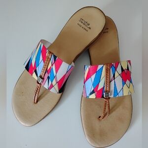Andre Assous Colorful Geometric Print Sandals Featherweights Comfy Flat Size 9