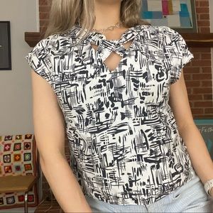 Retro Ink Pattern Short Sleeve Shirt VTG