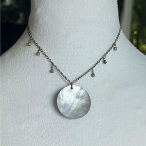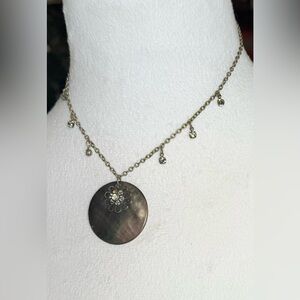 🐚 Beautiful necklace featuring an iridescent round shell pendant and crystal accents.