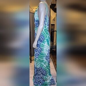 Nine West Blue and Green Patterned Maxi Dress