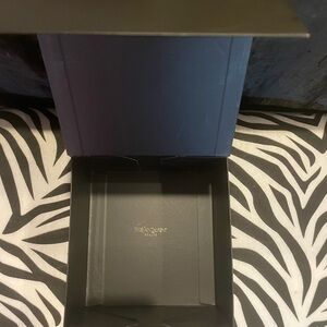 Elegant black box with iconic gold YSL logo. Perfect for storing accessories.