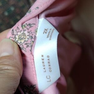 LC Lauren Conrad Tie Front Ruffled V-neck Top,Pink Size 2X
