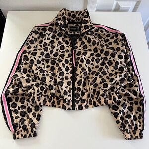 Guess Los Angeles Leopard Print Track Jacket Pink Stripe Women's Small