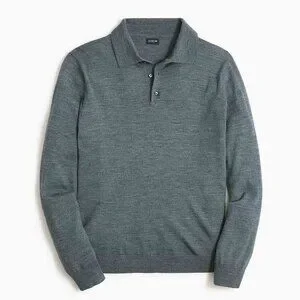 NWT J. Crew Merino Wool Blend Sweater Polo Heathered Evening Storm size M