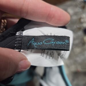 Chic one-piece swimsuit with a sleek front zipper. Features teal and black design.