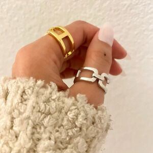 925 Sterling Silver Chunky Statement Ring Buckle Ring Large Thick Bold Ring