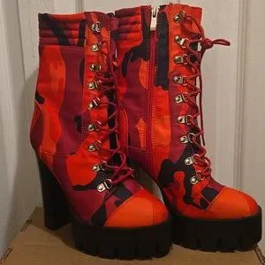 Azalea Wang Red/Black Camo Put It Down On Me Chunky Heel Boot
