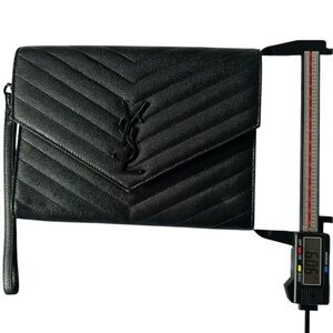 Saint Laurent cassandre Chevron quilted Clutch wristlet black YSL